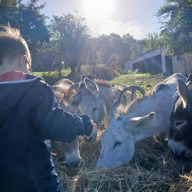 Je suis en partenariat avec l’asinerie de Kergall à Arzano. Les jeunes peuvent s’occuper des animaux et faire des randonnées en forêt